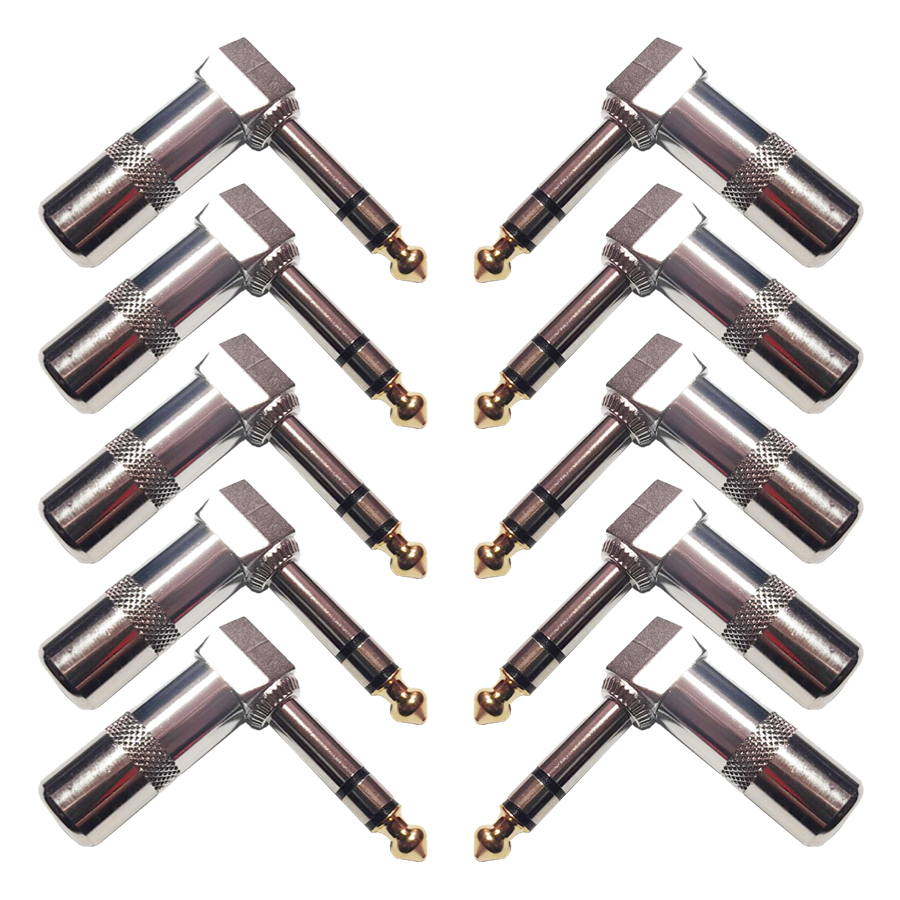Kit 10 Conectores Plugs P10 Estéreo 90º Graus em L Macho com Mola Áudio Vídeo Profissional