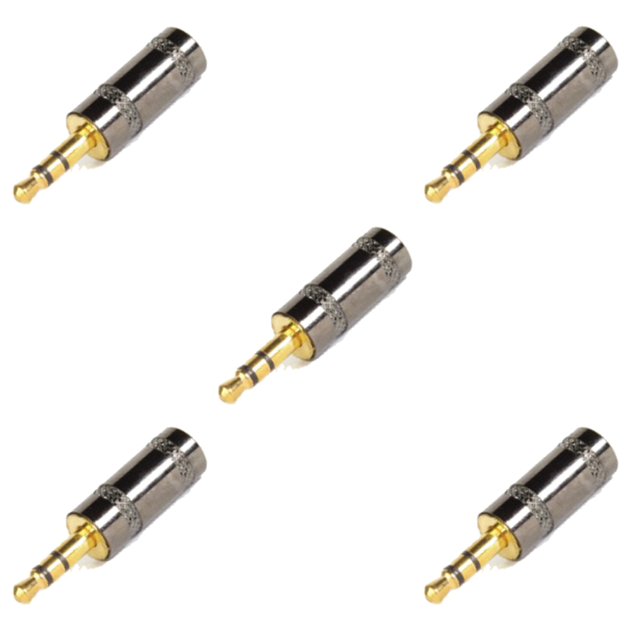 Kit com 5 Plugs Conectores P2 Estéreo Metal Ponta Ouro Profissional Preto
